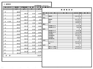 Excelファイル形式で、設定された測点・数量項目に応じた各数量項目の集計表の自動作成に加え、全体数量総括表まで自動作成することができます。Excel上での確認・編集・印刷作業が容易にできます。